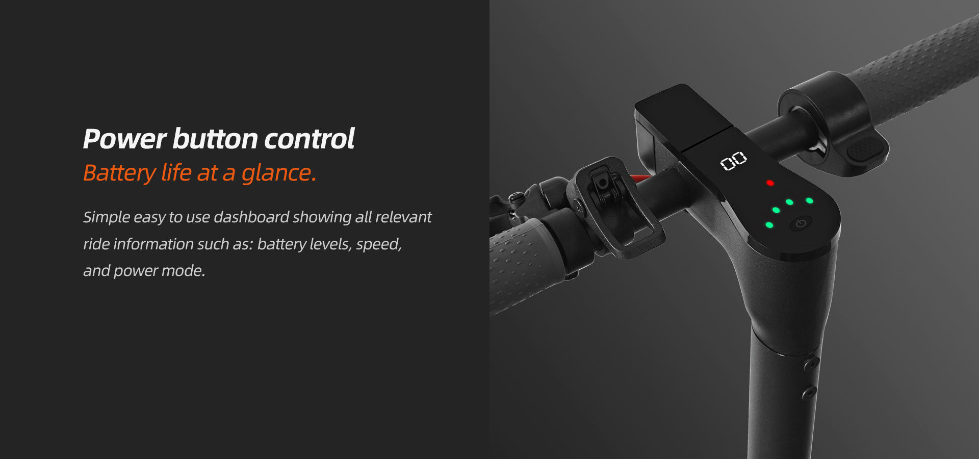 Controla tu velocidad y la información de la batería con facilidad a través de un panel de control intuitivo. Mantente informado mientras te desplazas.