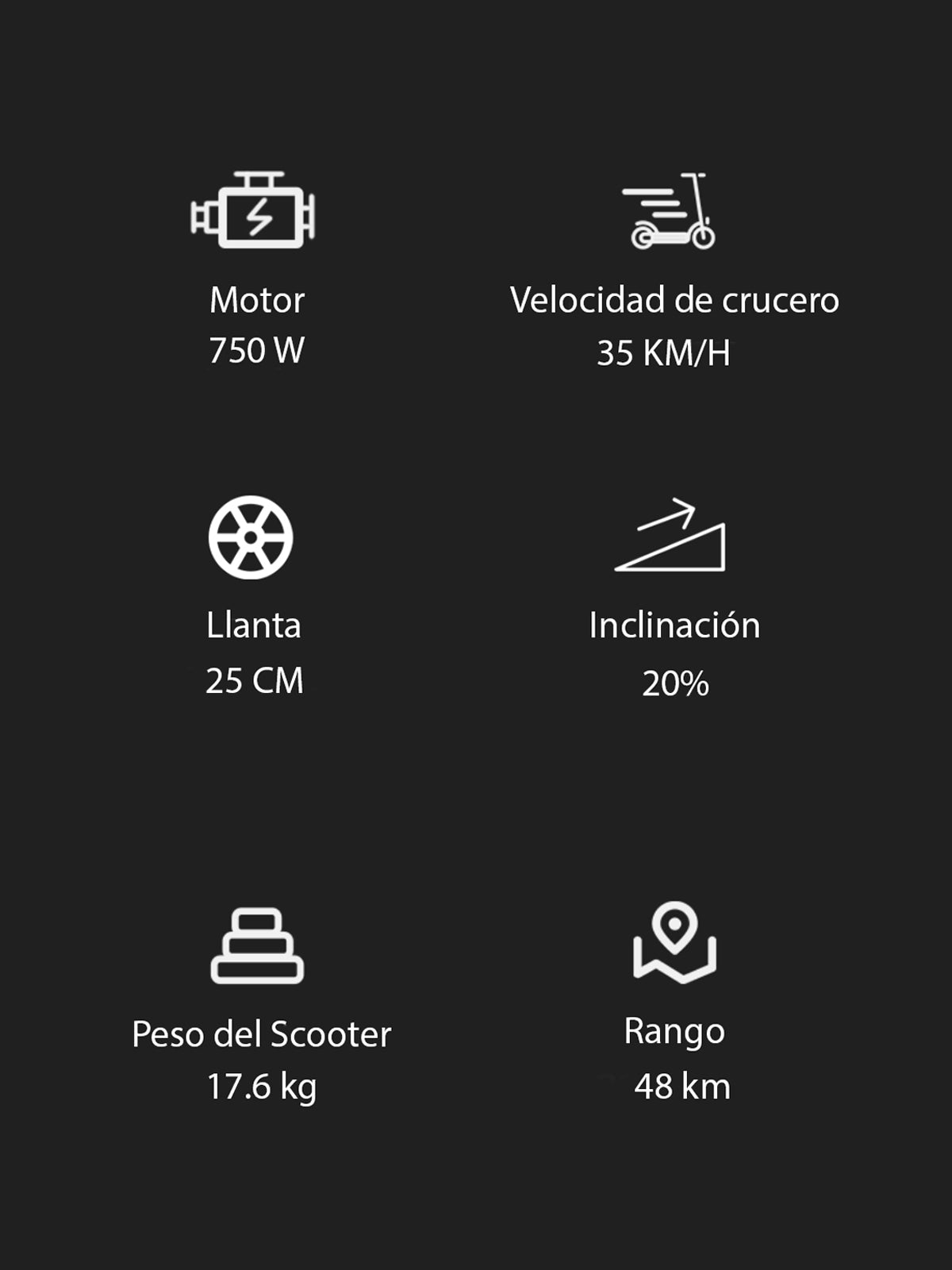 - Velocidad: 35 km/h